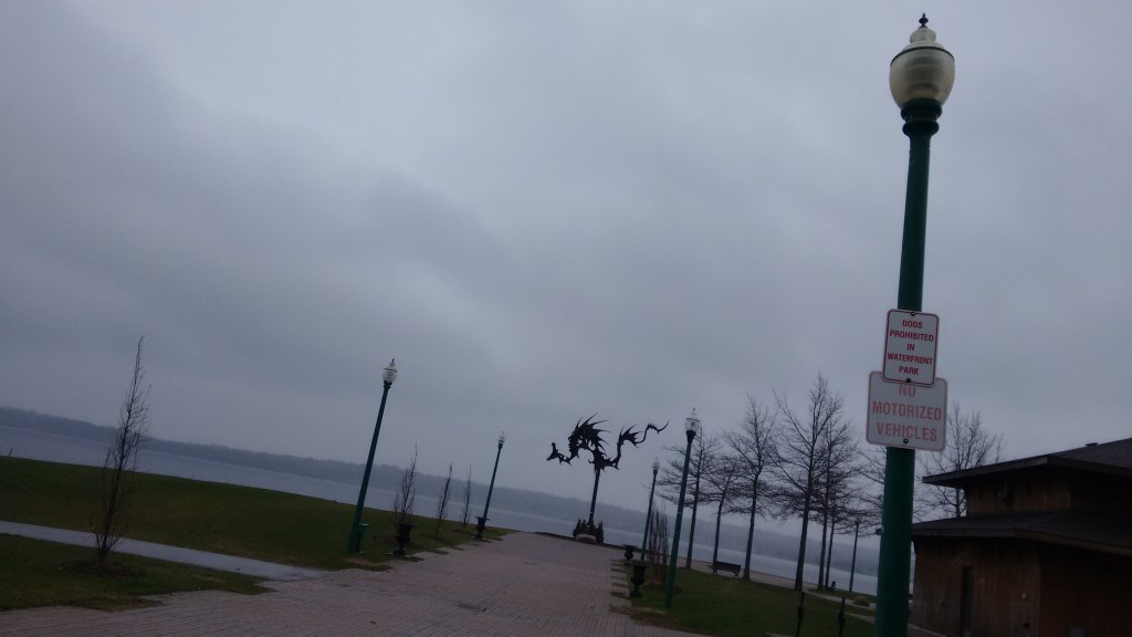 Dogs are walking their owners – they know the score. Get the humans exactly where they want them. If the trail wasn’t by the lake, this would be a very dull walk. A man can’t even trespass around here!