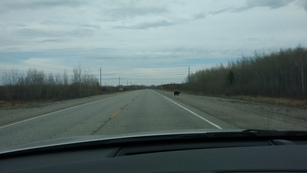 And almost immediately upon leaving the city limits, I stumble across a great bear sauntering across the highway right in front of me, with little care and a lax attitude to the green cross code.