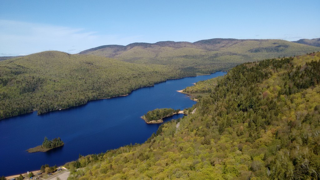 I can only just about appreciate and enjoy the enormity of the panoramic lookout views over the glacial vallies and deep-blue lakes and the vast Mont Tremblant highlands – smothered in an infinite woodland blanket, naturally – while being bitten repeatedly.