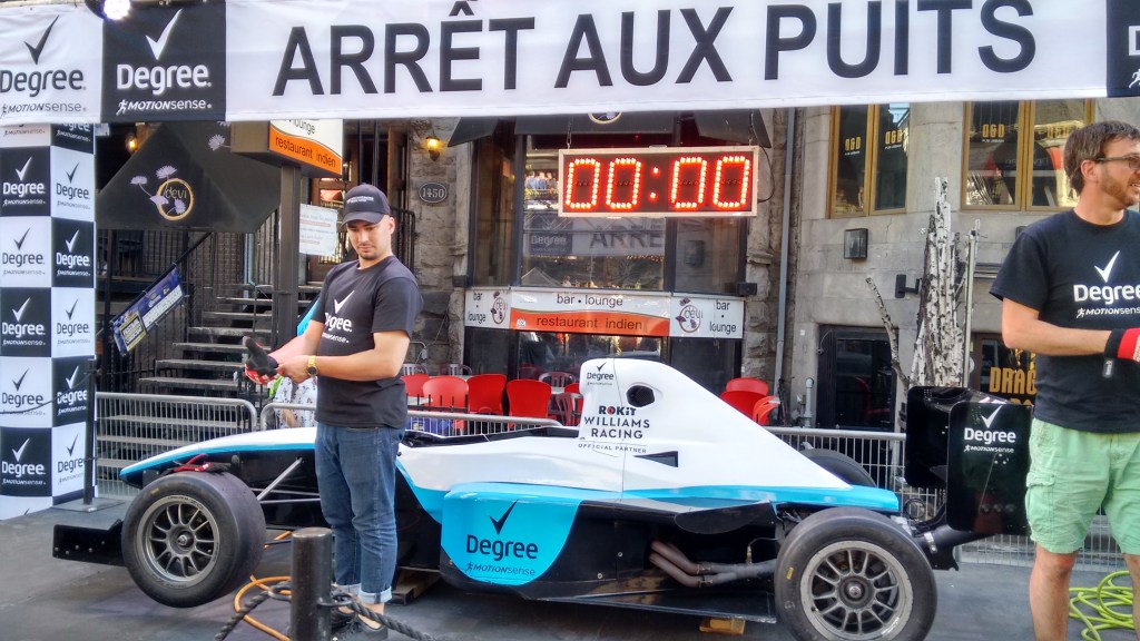 As well, the latest Williams F1 car, the driver having temporarily abandoned it on the sidewalk, for a pitstop at the bar, for a roadside beverage (and presumably to take away a Red Bull, arf arf).