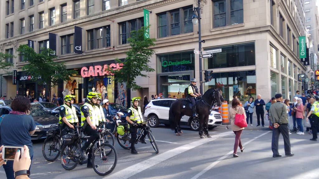 Shortly afterwards, I’m stuck fast once again in the gloop of city suburb roadwork misery, which continues into downtown Montreal (an archeological site), where I’m sent around in circles by a man in a dayglo orange vest waving flags.