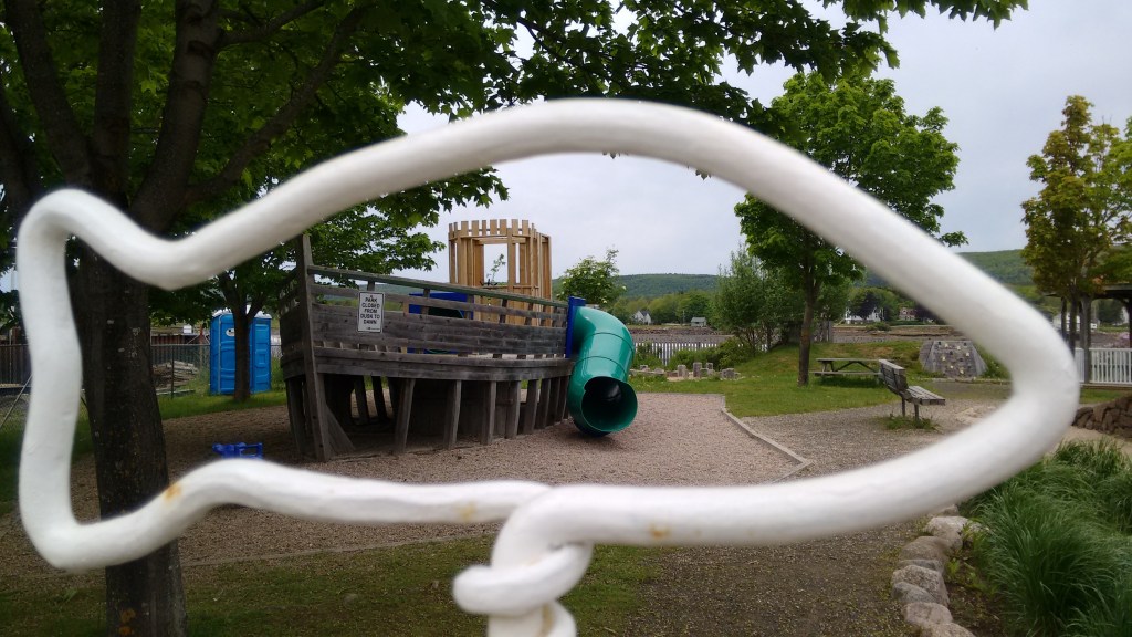To the other end of town, past the maritime-themed playground with the washed-up boat frame, children occasionally tumbling out in amongst the bilge water.