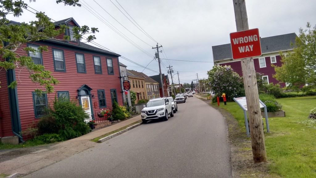 Old houses, old boxes, the boardwalk along the waterfront from the cop shop.