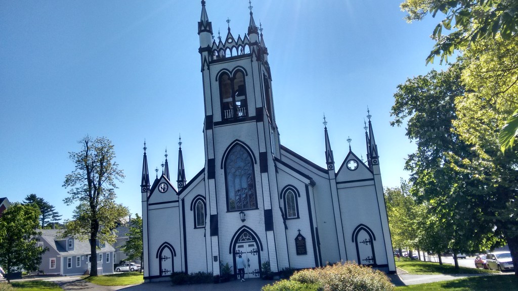 I clamber over the rocky promontory for a short while, trying to escape the daytrippers, before giving up and fleeing back to town, to stand outside a toilet block in Lunenburg for half an hour, because I chose to stand outside the one john where someone happens to be dropping anchor.