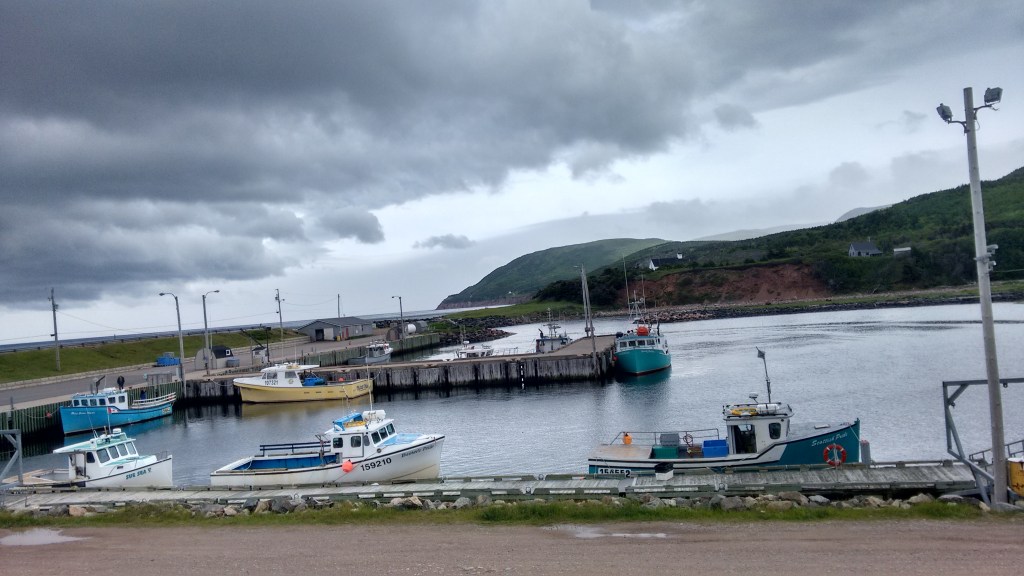 After a long while, I stroll out along the coast and then inland through the bush, heading to the Rusty Anchor to get my chops around the burger that ate Cape Breton.