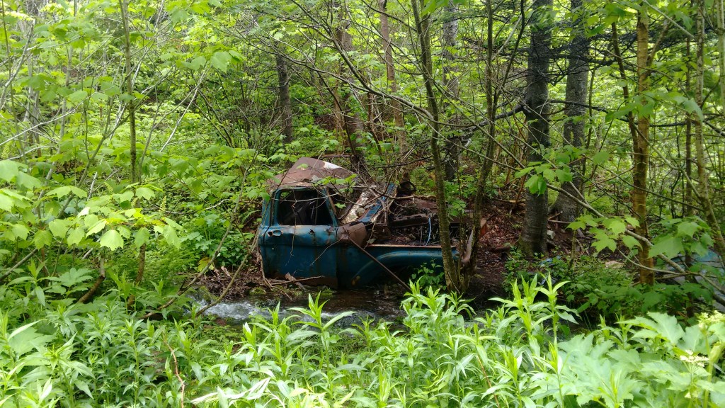 The road out to Meat Cove is a potholed rollercoaster ride, washed out in places after the persistent on / off rain of the last week or so. Blue sky not seen for days.