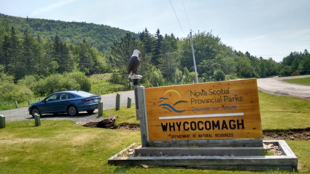 Feeling the need for action before the predicted tropical heat descends, I spring up and drive over to Whycocomagh Provincial Park, to uncover a winding trail system that sweats any residue machismo out of me, on the steep tracks.