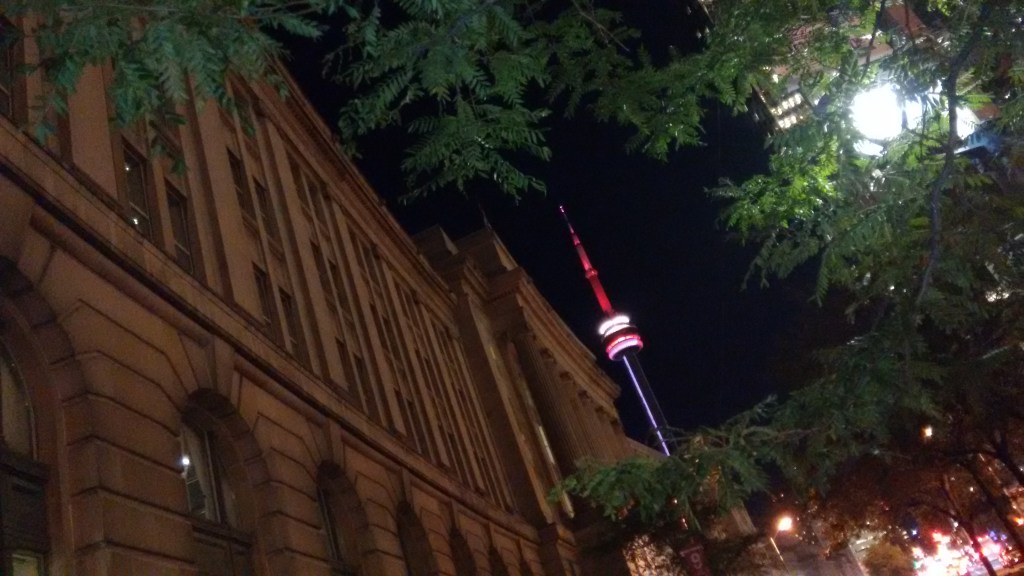 I end up on the 17th floor, with a moderately good view of the streets down below, and the CN Tower a few blocks away. Yes, this’ll do, I figure.