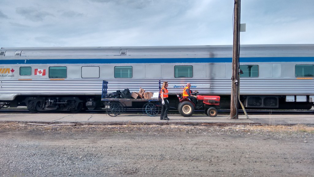Cheerily welcomed on board and shown to my cabin, for a lesson in how to put things together, and how things work on board the Canadian; when all I want to know is … where’s the Park Car, and what time can I go there? (other end of the train; 4pm)