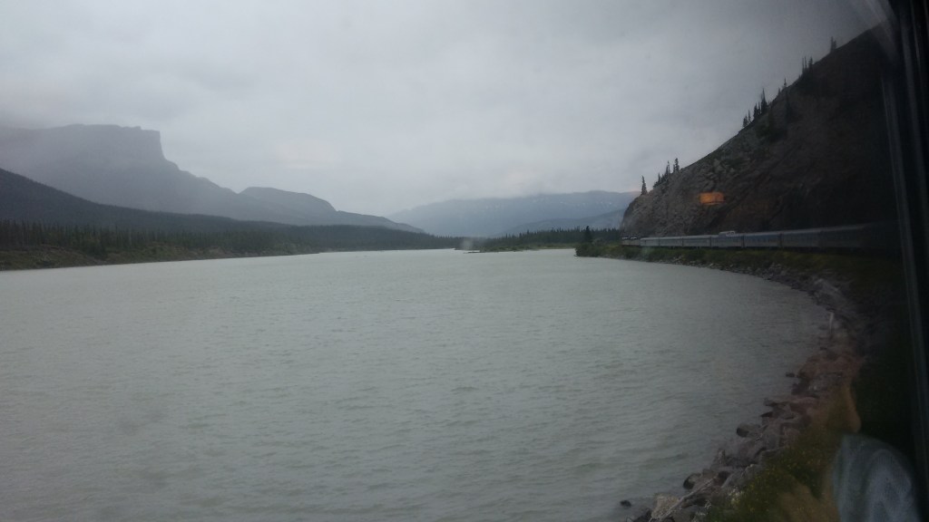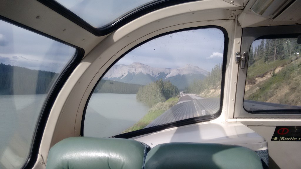 I’m stuck in the panoramic dome car, is what – looking at Jasper, but not quite there … not allowed to disembark as we’re waiting for another train to get out of the frickin’ way.
