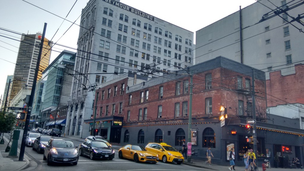 I take my evening drinks in the brewery basement, then the modern bar … a Vancouver bar, a BC yarn.