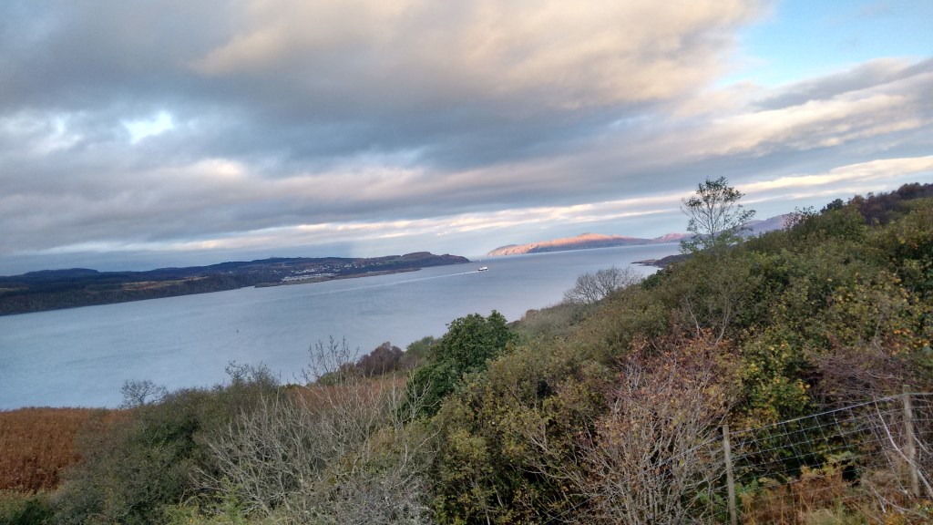I wake up to the reality of new Autumn colours and views of a seemingly whitewashed Tobermory over the Sound of Mull, with early morning boats and ferries occasionally drifting past through the still waters.