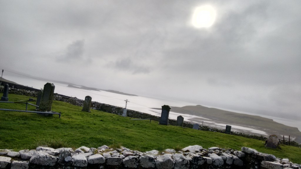 Up the hill, the road delivers my car to Trumpan, and the ruined church.