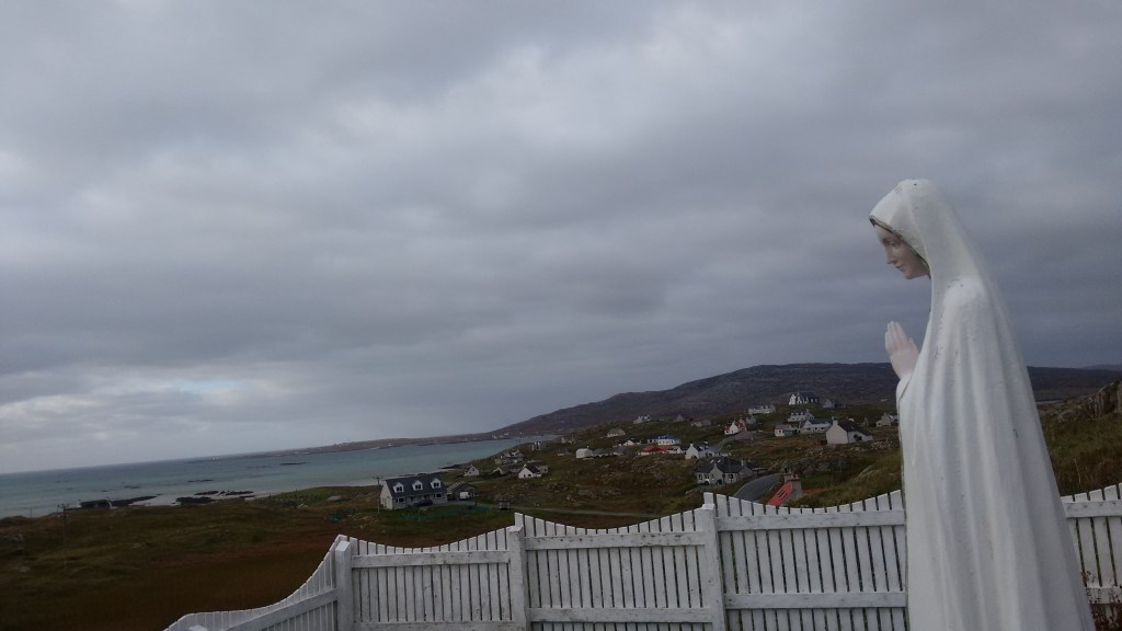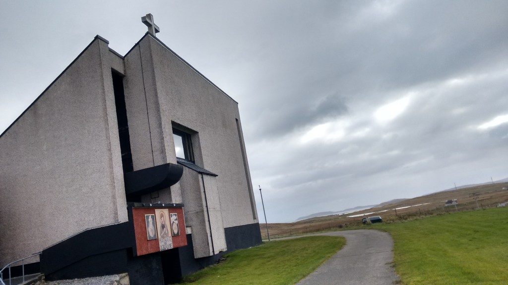 I much prefer the brutalist minimalism and concrete angles of the other place of worship that sits a few miles up the road, back on the Uist main; an unforgettable assault on sore eyes.