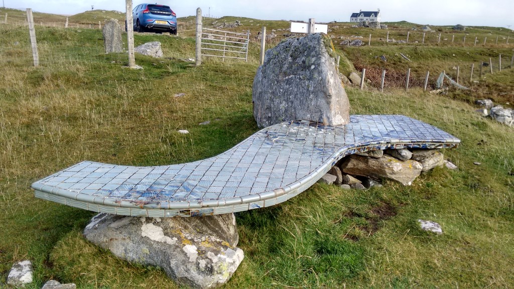 Needless to say, I carry their crap into the footwell of my car, and take it to the end of the road sculpture – a singing bench by the water, a place of rest and contemplation for weary travellers and doubting pilgrims.