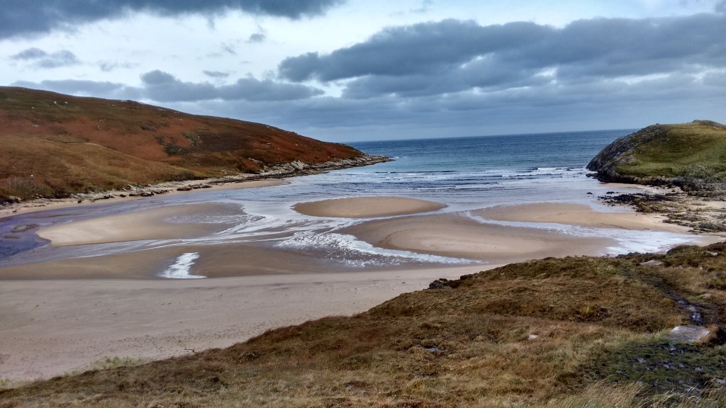 I amble into Strathan and down to Achininver Beach, where my guidebook guarantees I will be found alone. Which is a strange comment for the guidebook to make … why am I being found, and who is finding me?