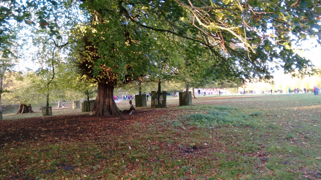 Beyond the crowds is a deep-thinking stag, resting beneath the majestic trees, contemplating the next rut.