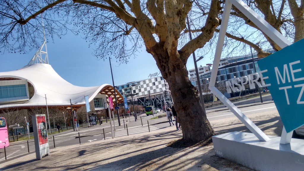 On International Colour Day, to the Pompidou Centre at Metz, to watch people dressed in black watching people dressed in white create stripes of colour on a wall in front of us. Possibly.